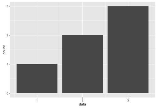 geom_barというかstat_countの方だと思うけど、例えばこんなデータがあったとして data <- c(1, 2, 2, 3, 3, 3, NA, NA, NA, NA) 普通に棒グラフを描くとこうだ。 ggplot() + geom_bar(aes(data)) ところがfactorにするとこうだ。 ggplot() + geom_bar(aes(f…